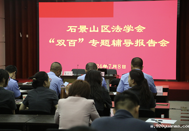 2024年7月8日上午,石景山区法学会在区法院举办“双百”专题辅导报告会。本次报告会在区法院开设1个线下主会场、5个线上分会场,区委政法委、政法各单位、各街道司法所及律师代表共计1000余人参加。