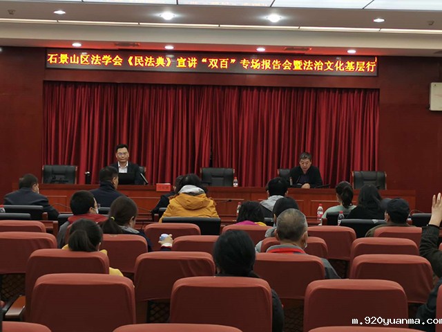 10月27日上午,石景山区法学会按照市法学会关于宣传贯彻《民法典》实施方案的安排,在区政府举办《民法典》宣讲“双百”专场报告会暨法治文化基层行活动,区委政法委、政法各单位和各街道50余人参加活动。