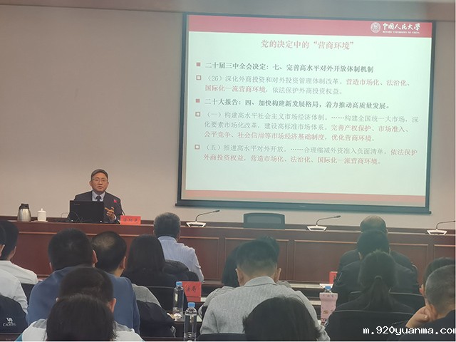 徐阳光教授以“深入学习贯彻党的二十届三中全会决定 着力打造一流法治化营商环境”为题,从全面准确理解《决定》提出的“营商环境”概念及历史沿革,到制定民营经济促进法的深度解读,详细阐述了《决定》提出的构建高水平社会主义市场经济体制重大举措。