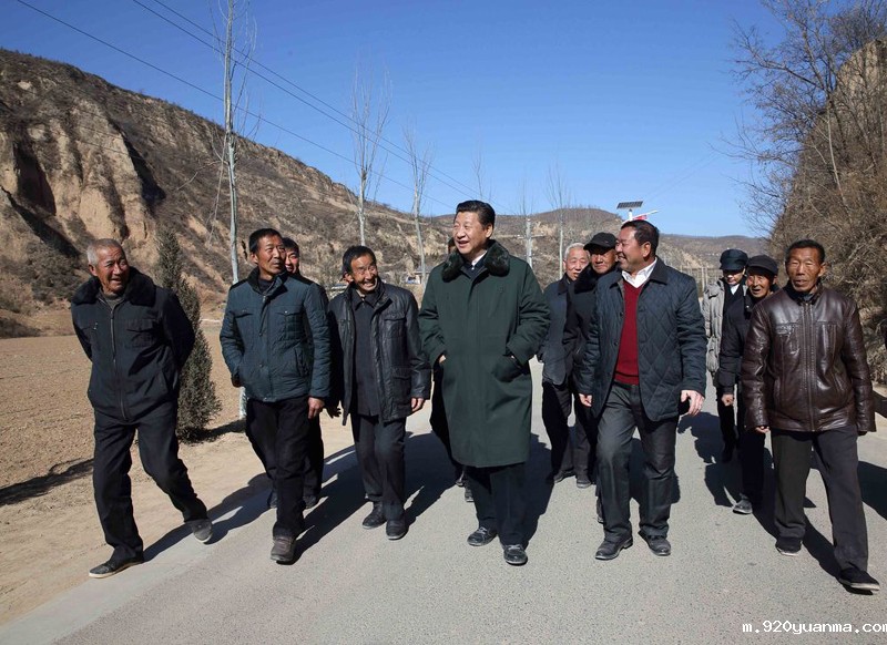 2015年2月13日,习近平在陕西省延安市延川县文安驿镇梁家河村看望村民,并就老区脱贫致富进行实地调研。新华社记者 兰红光 摄
